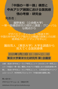 「中国の一帯一路」構想と中央アジア諸国における国民感情の考察・研究会(1月22日)